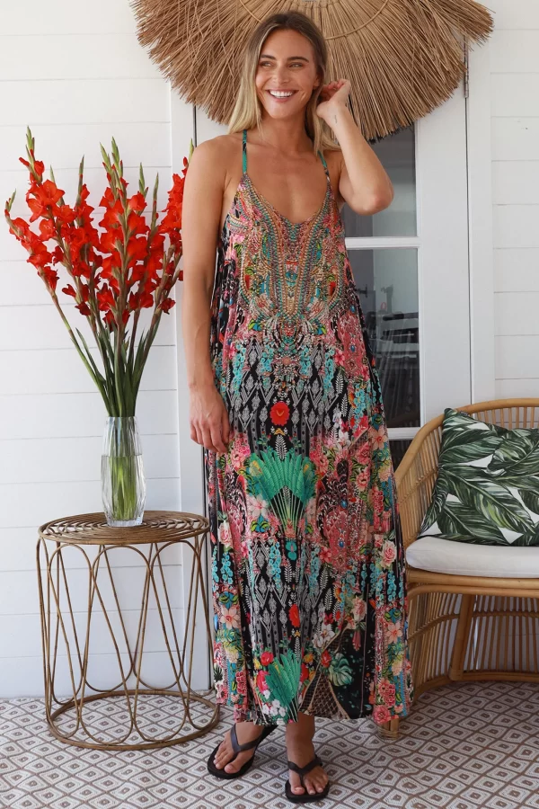 The silhouette flows with ease, gently skimming the body in a relaxed fit. A flattering V-neckline, adjustable straps, and racerback detailing offer a touch of coastal modernity. Lightweight and endlessly versatile, it's made to move with you — from slow mornings and golden hour wanderings to twilight dinners and summer escapes.